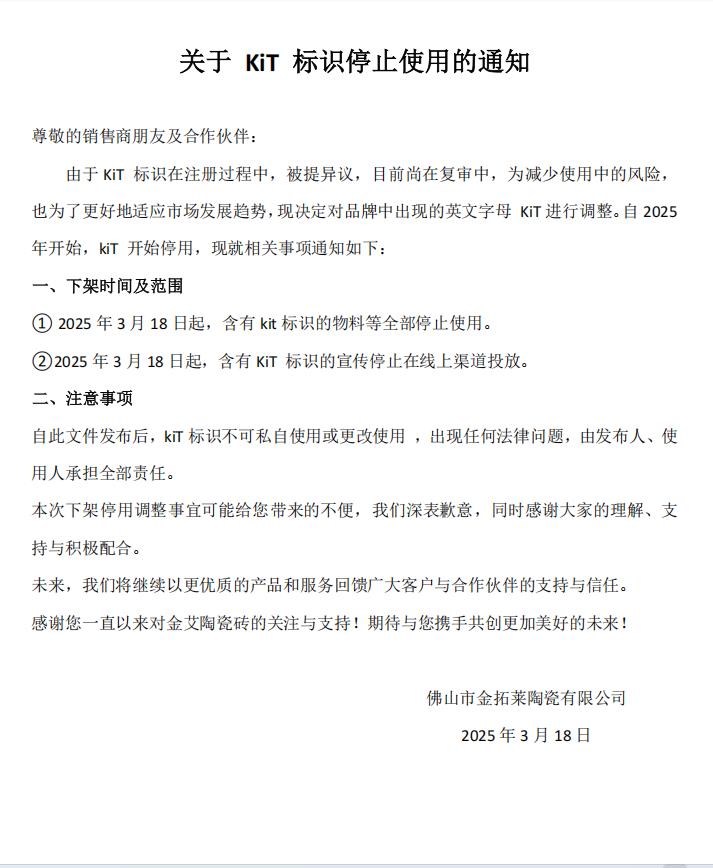 關(guān)于KIT標(biāo)識(shí)停止使用的通知——關(guān)于KIT標(biāo)識(shí)停止使用的通知